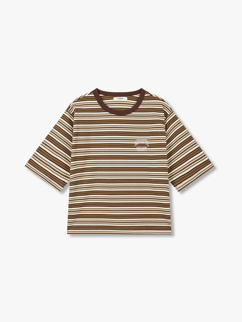 [스튜디오 톰보이] 멀티 스트라이프 크롭 티셔츠_브라운 9176322976