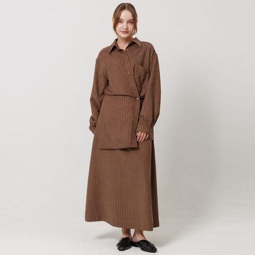 [그단]스트라이프 스트랩 디테일 롱 셔츠&스커트 세트