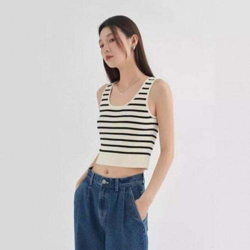 [셀럽하우스]민소매 OAWE6031 스트라이프 데일리 니트 크롭 클래식 나시 티