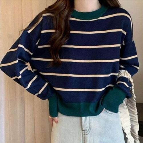 [SBD] 니트티 카라 스웨터 브이넥 긴팔 여성 니트 스트라이프 가을 크롭 간절기