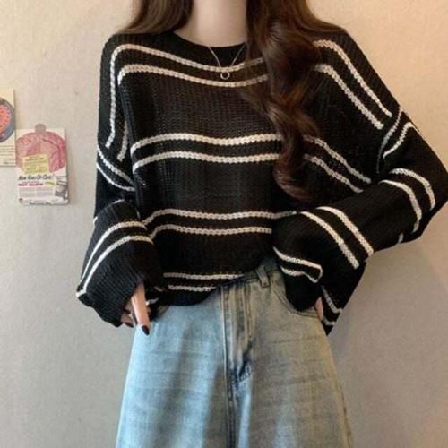 [셀럽하우스]여성 SUXX5575 시스루 캐주얼 니트티 스트라이프 필수템 크롭