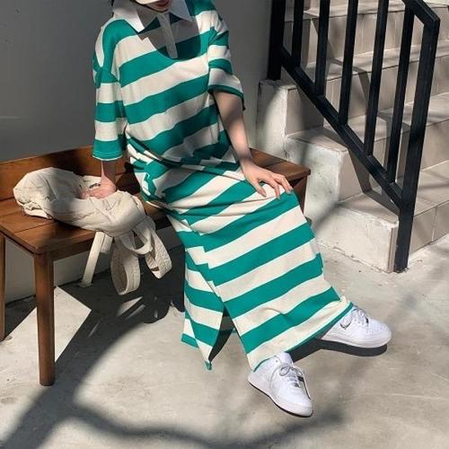 [다잇템][다잇템] 여자 여행룩 줄무늬 SS 면원단 반소매 롱원피스_16135341_588872