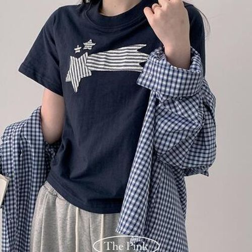 더핑크 / 유성 루즈핏 스트라이프 스타 반팔티