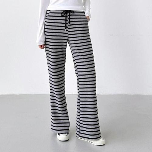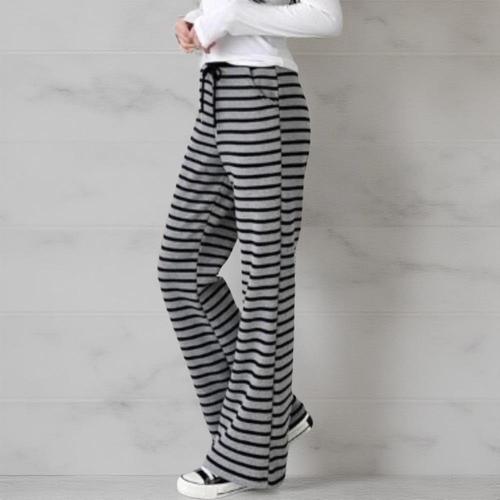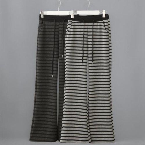 여성 스트라이프 부드러운 양털안감 유니크 부츠컷 밴딩 팬츠 WFL0M7H