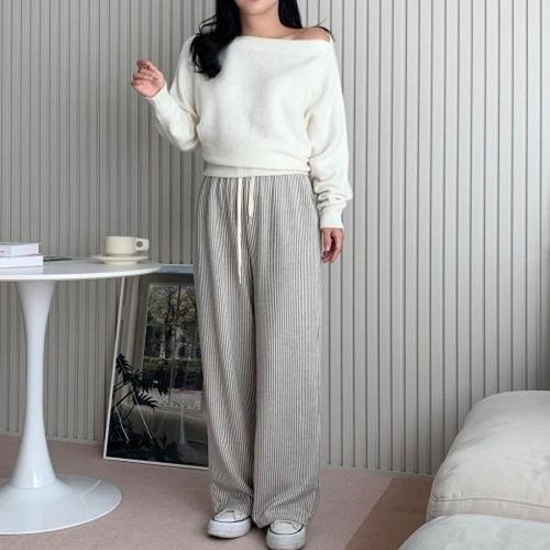 [엄지척]와이드 팬츠 여자 스트라이프 통바지 밴딩 단가라_20196158_667501