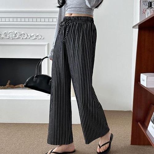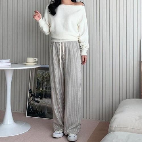 엘케이트 여성 와이드 슬랙스 줄무늬 로우라이즈 밴딩 팬츠 LMVP001