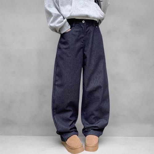 [옷자락] 여성 힙무드 논페이드 스트라이프 데님 밴딩 와이드 팬츠
