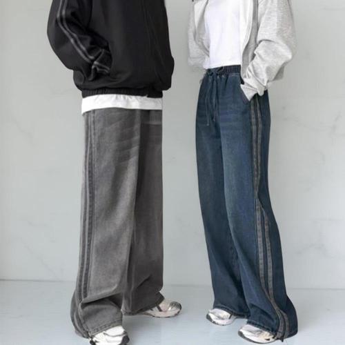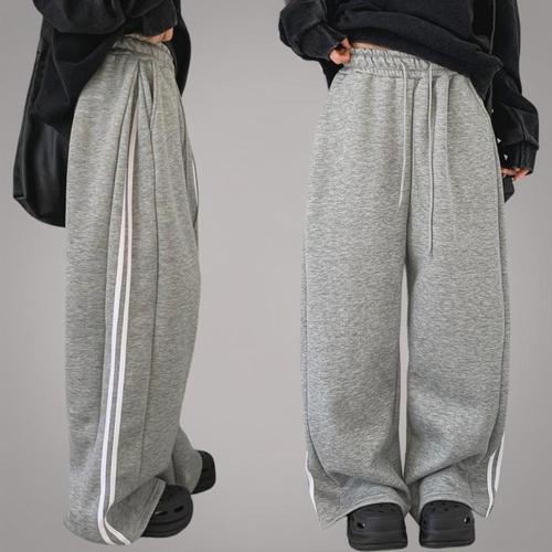 [옷자락]여성 캐주얼 트랙 스트라이프 밴딩 와이드 바지