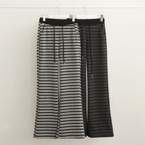 [옷자락] 여성 캐주얼 면혼합 스판 줄무늬 밴딩 부츠컷 팬츠