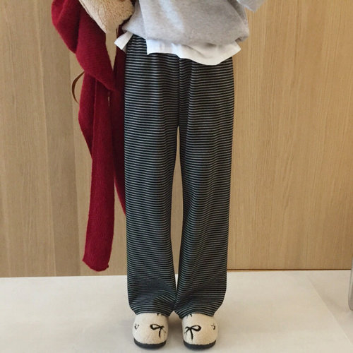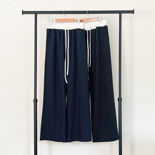 [옷자락]여자 가을 출근룩 배색 밴딩 스트라이프 와이드 바지