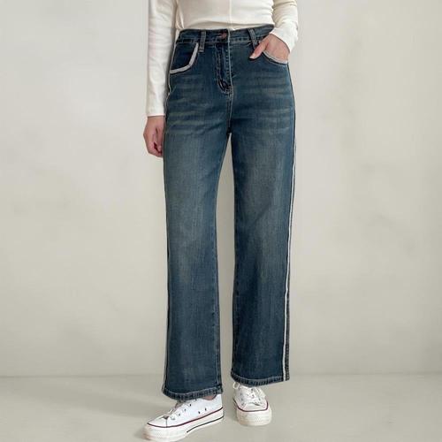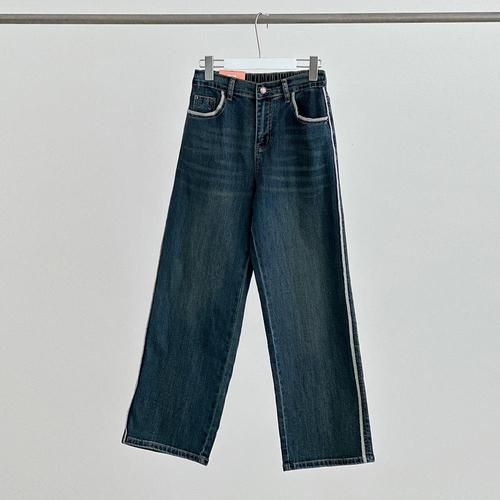 여성 H라인 워싱 콘트라스트 단가라 데님팬츠