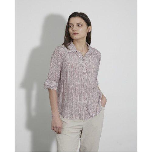 비욘드라이프 클래식 배색카라 스트라이프 블라우스 1001788