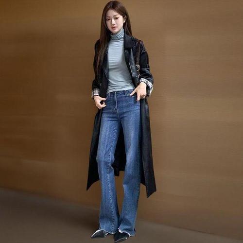 [신상오픈런]여자 유니크 레더 허리스트랩 트렌치 가죽 롱 코트
