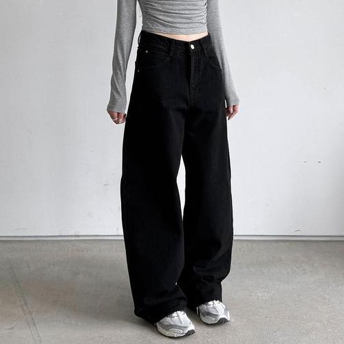 [다잇템]여자 일상룩 와이드핏 스트릿 검정 박시 면바지 (41551968A)