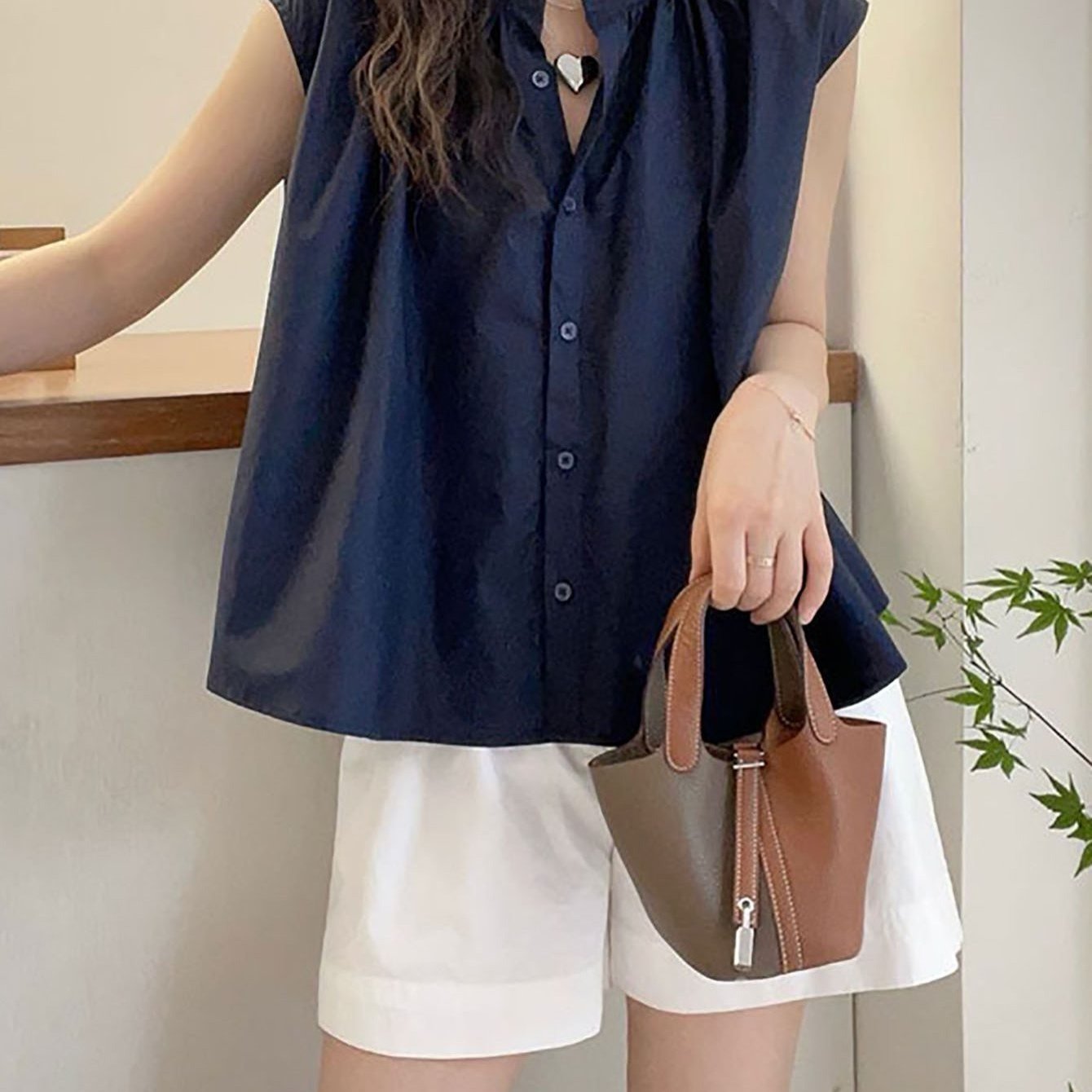 [VIVID SG] 꽃잎배색카라 나시 블라우스 VS024074