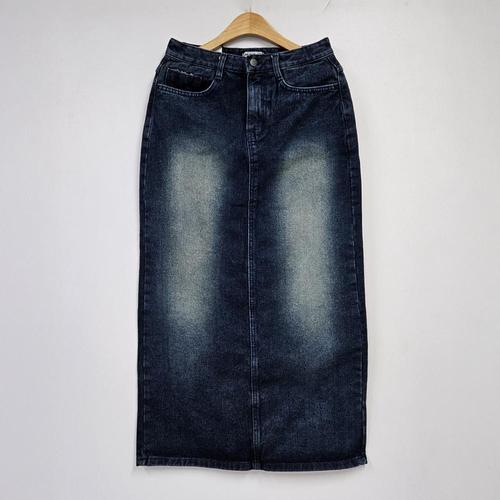 허니제이 / 늘피 데님 스판 뒷트임 히든밴딩 롱 스커트(S XL)