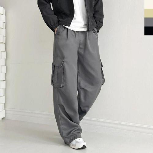 [에이치플러스몰]와이드 남자바지 스판 밴딩반바지 남성바지 7부 신상