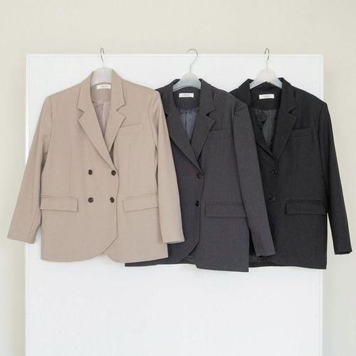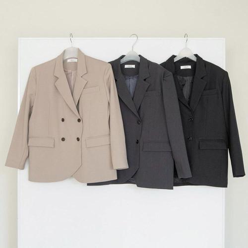 [옷자락] 여성 오버핏 더블버튼 스판 카라넥 봄 하객룩 포켓 자켓