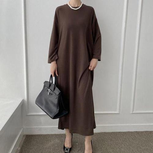베이직 스판 라운드넥 롱 니트 원피스 (one color)