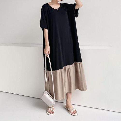 [셀러허브_여성트랜드패션]빅사이즈 509 스판브이넥배색원피스 DGLL063