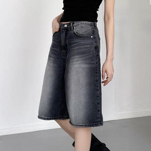 [다잇템]여자 버뮤다 하프 워싱 논스판 넓은 청반바지 (16227261A)