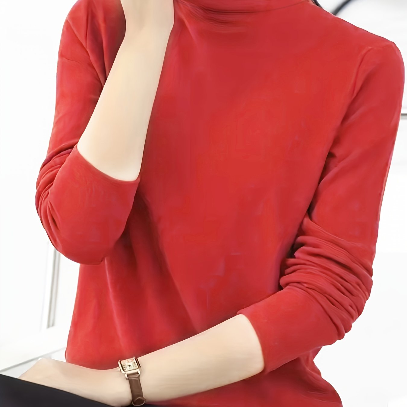 TEMU 여성용 우아한 하이넥 긴팔 티셔츠 - 부드럽고 신축성 있는 원단, 가을/겨울용 슬림핏 상의, 오피스, 파티