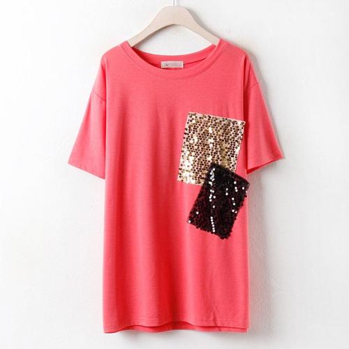 [셀럽하우스]빅사이즈 YQCQ0367 큰옷 NB 스팽글포켓반팔티(2594H404) 미시옷