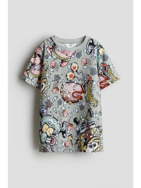 [에이치엔엠] 프린트 티셔츠 더스티 그린/스폰지밥 1304192001