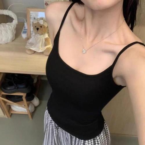 굵은 어깨끈 캡 내장 여자 데일리 볼륨 업 나시티 (WBE0CAB)