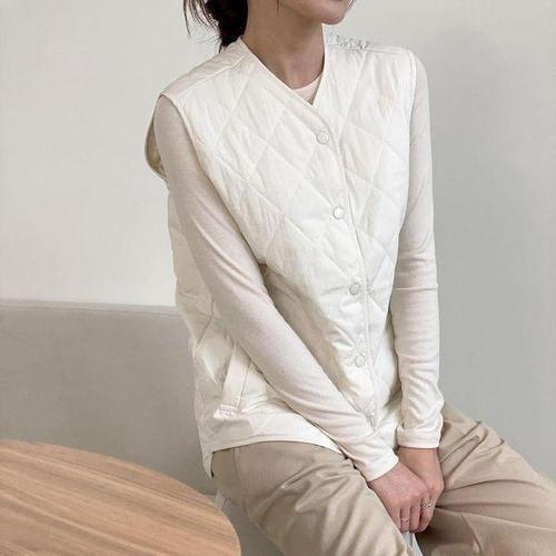 [다잇템]여자 V넥 언발 얼리윈터 누빔 퀼팅 패딩조끼