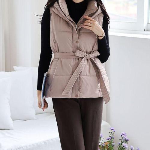 [다잇템]여자 리본 폴라넥 후디집업 FW 스트랩 패딩조끼