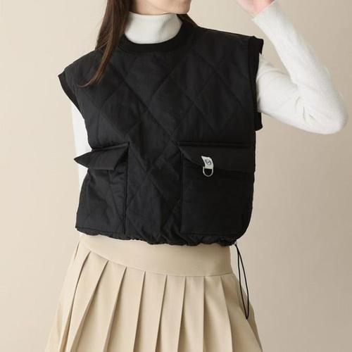 [다잇템]여자 더블포켓 스토퍼 라운드 패딩조끼 (18986016A)