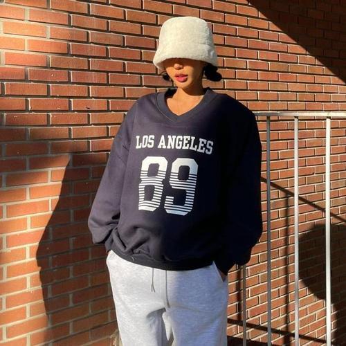 COSYEVNO 여성 브이넥 맨투맨 봄가을 루즈핏 스포티 캐주얼 BCXwy-1