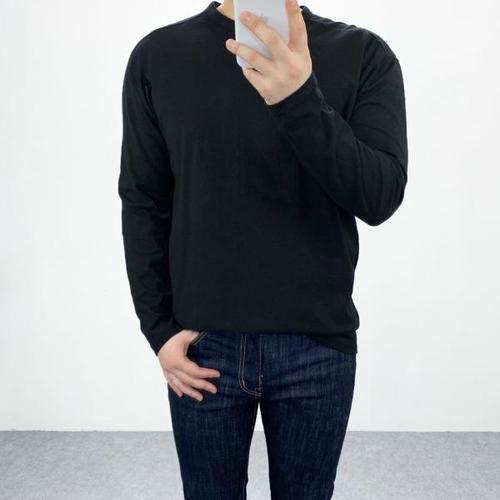 [엠클로]남자 기본핏 레이어드 20수 옆트임 슬라브 무지 라운드 긴팔티셔츠 4컬러