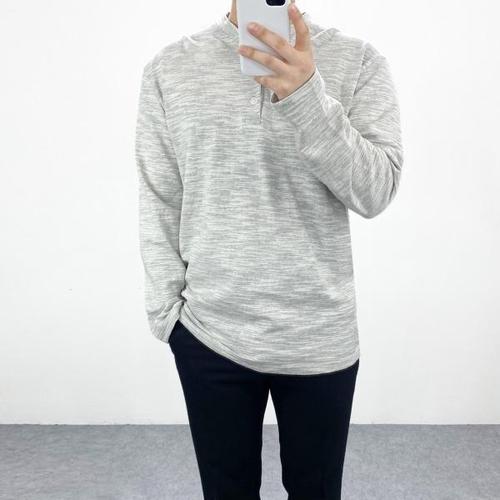 [엠클로]남자 오버핏 탄탄 10수 반오픈 단추 헨리넥 슬라브 긴팔티셔츠 4컬러