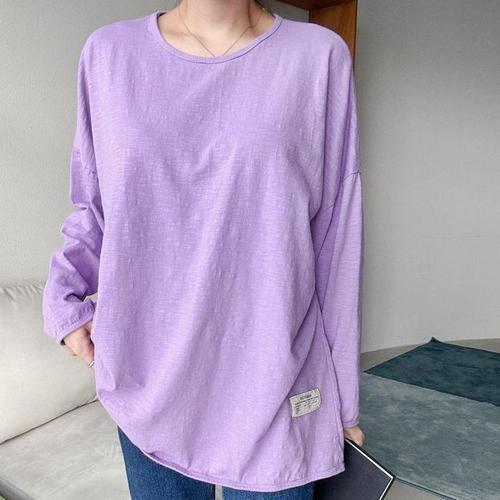 [다잇템]여자 큰사이즈 연보라 U넥 슬럽 티셔츠 (12266323A)