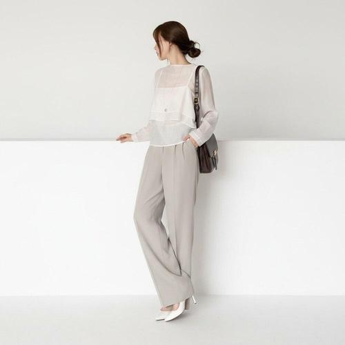 [퀸이즈][퀸이즈] [77까지]라우리 플라워 리본 블라우스+슬랙스 SET