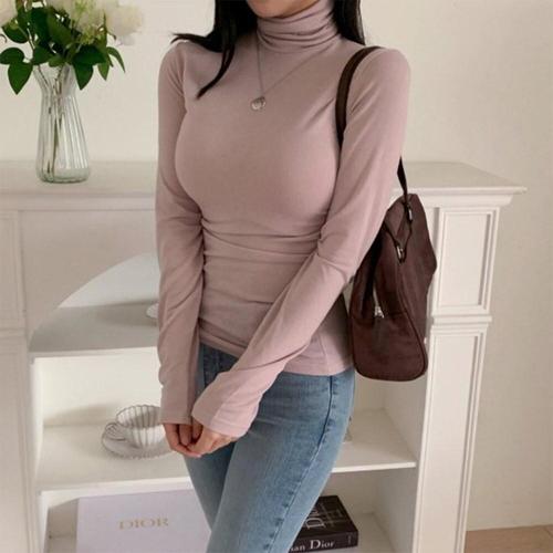 [옷자락] 여자 목폴라이너 슬림핏 쫀쫀스판 시스루 셔링 티셔츠