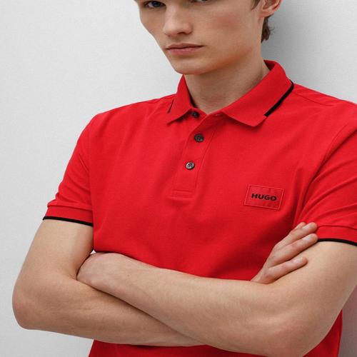 보스 폴로셔츠 퍼플 로고 패치 스트레치 코튼 슬림 핏 폴로 셔츠 261085M212033