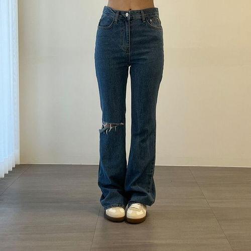 [신상오픈런]여성 슬림핏 부츠컷 여름용 논스판 청바지 무릎 컷팅