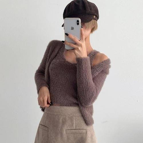 [다잇템][다잇템] 여자 FW V넥 시어링 털나시 슬림 탱크 카디건 세트_23918251_588872