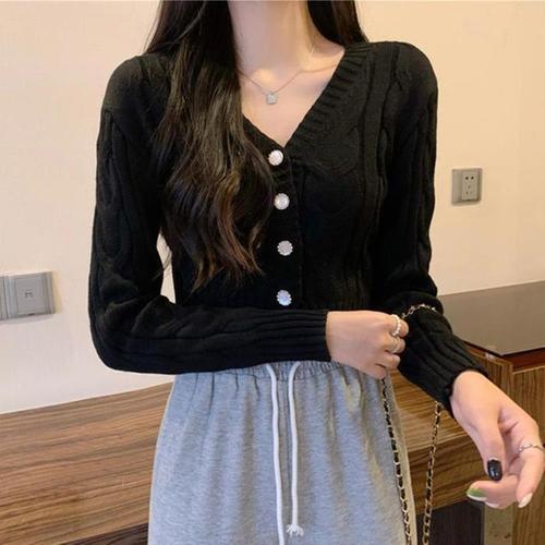 여성용 토시 캐주얼 니트 가디건 탑 긴 소매 골지 패치워크 슬림 엘레강트 루즈 크롭 탑 여성 니트웨어 가디건