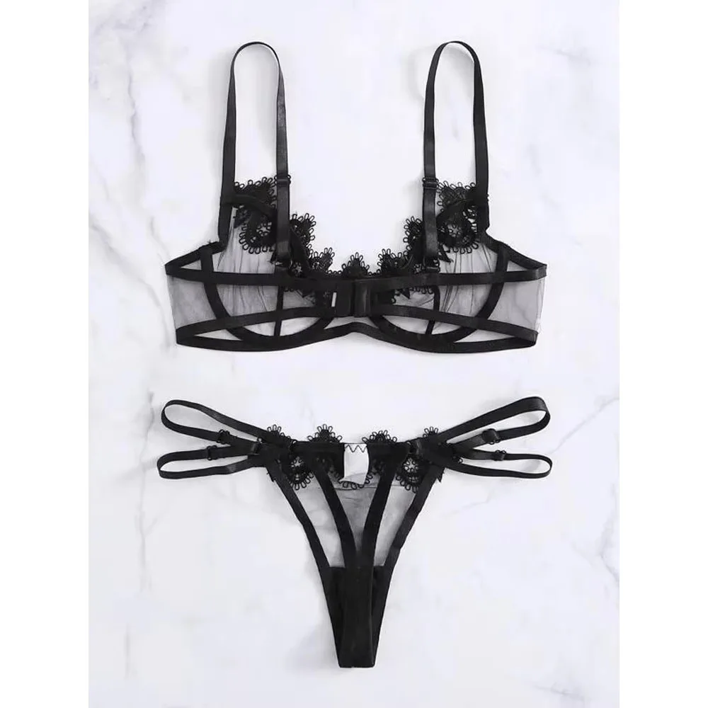 여성 섹시 속옷 세트 레이스 망사 바디수트 란제리 플로럴 시스루 슬립웨어 투명 원피스 브라 세트 딥 V
