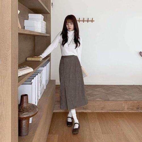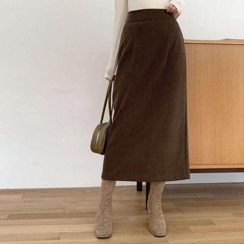 [다잇템]여성 슬릿 골덴 일자 긴치마 뒷밴딩