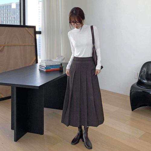 [다잇템]여성용 옆면 혁대 포인트 슬릿 아코디언 스커트