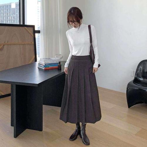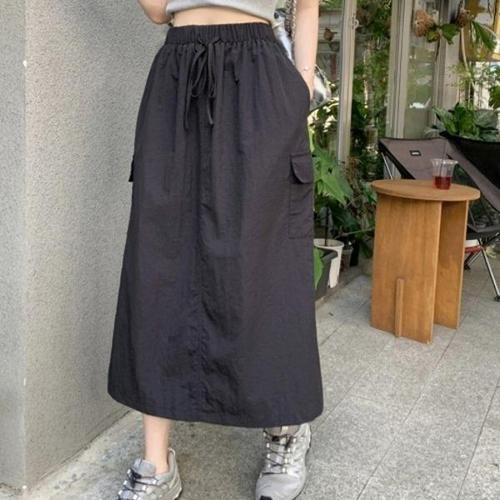 [다잇템]여성용 세무 뒷밴드 슬릿 일자 롱스커트