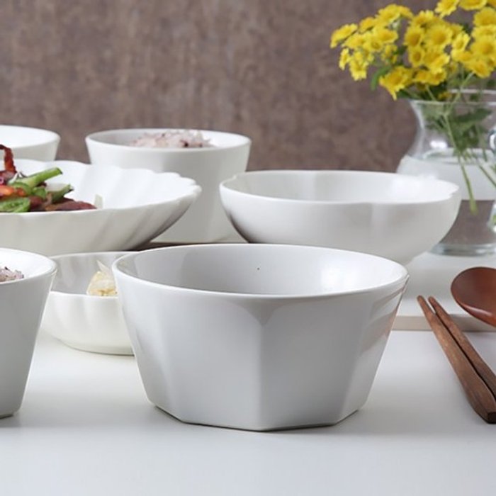 키친스타일 시라쿠스 네이처 프리즈 밥 공기 밥그릇 유광 화이트 도자기