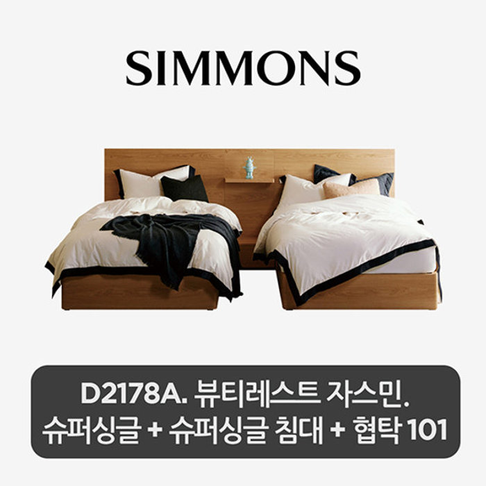 (주)시몬스 [2개묶음] D2178A. 뷰티레스트 자스민. 슈퍼싱글+슈퍼싱글 침대+협탁 101