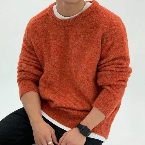 [다잇템]남자 부드러운 라운드 경량 시밀러룩 니트 (19295705A)