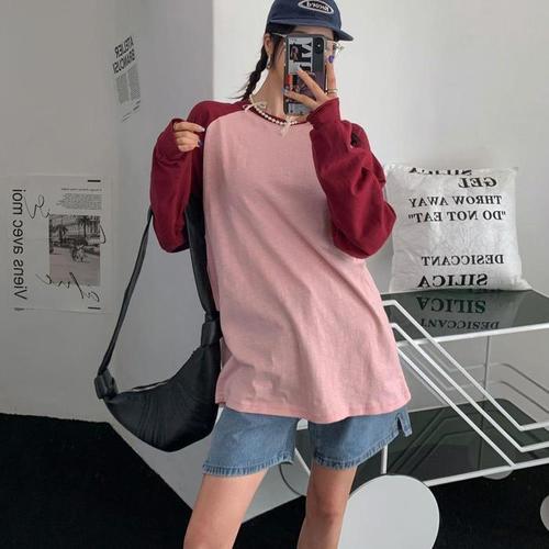 [다잇템]여자 라글란 시밀러룩 박스핏 티셔츠 (16516466A)